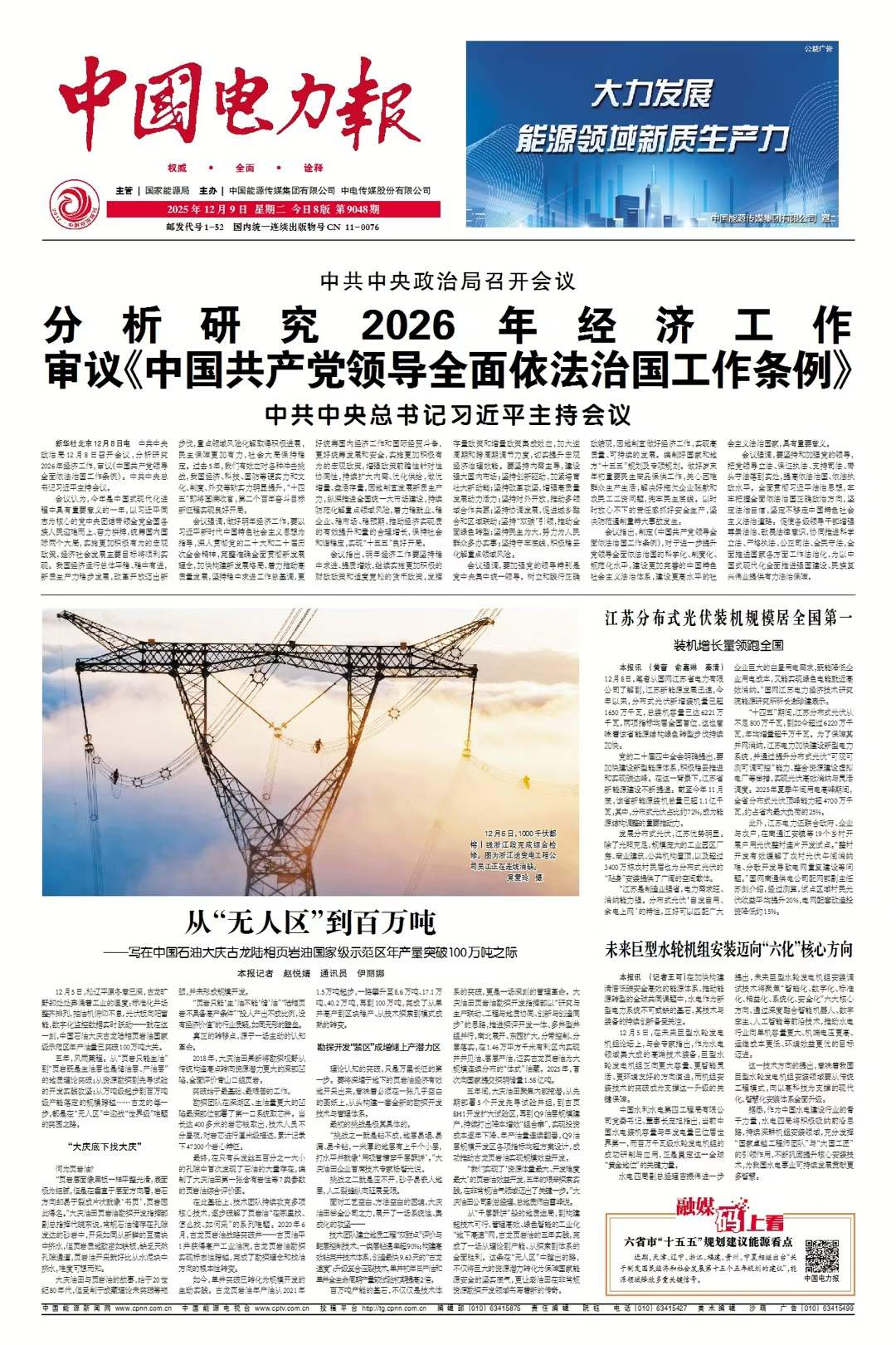 論壇聚焦巨型水輪發電機組發展方向,緊扣數智技術融合、核心技術攻關等行業關鍵命題,搭建政產學研深度融合的高端交流平臺,為未來巨型水輪機組智能化、綠色化和低碳化提供研究方向和攻關思路,共話行業創新發展的新未來。(2025年12月10日 04版)